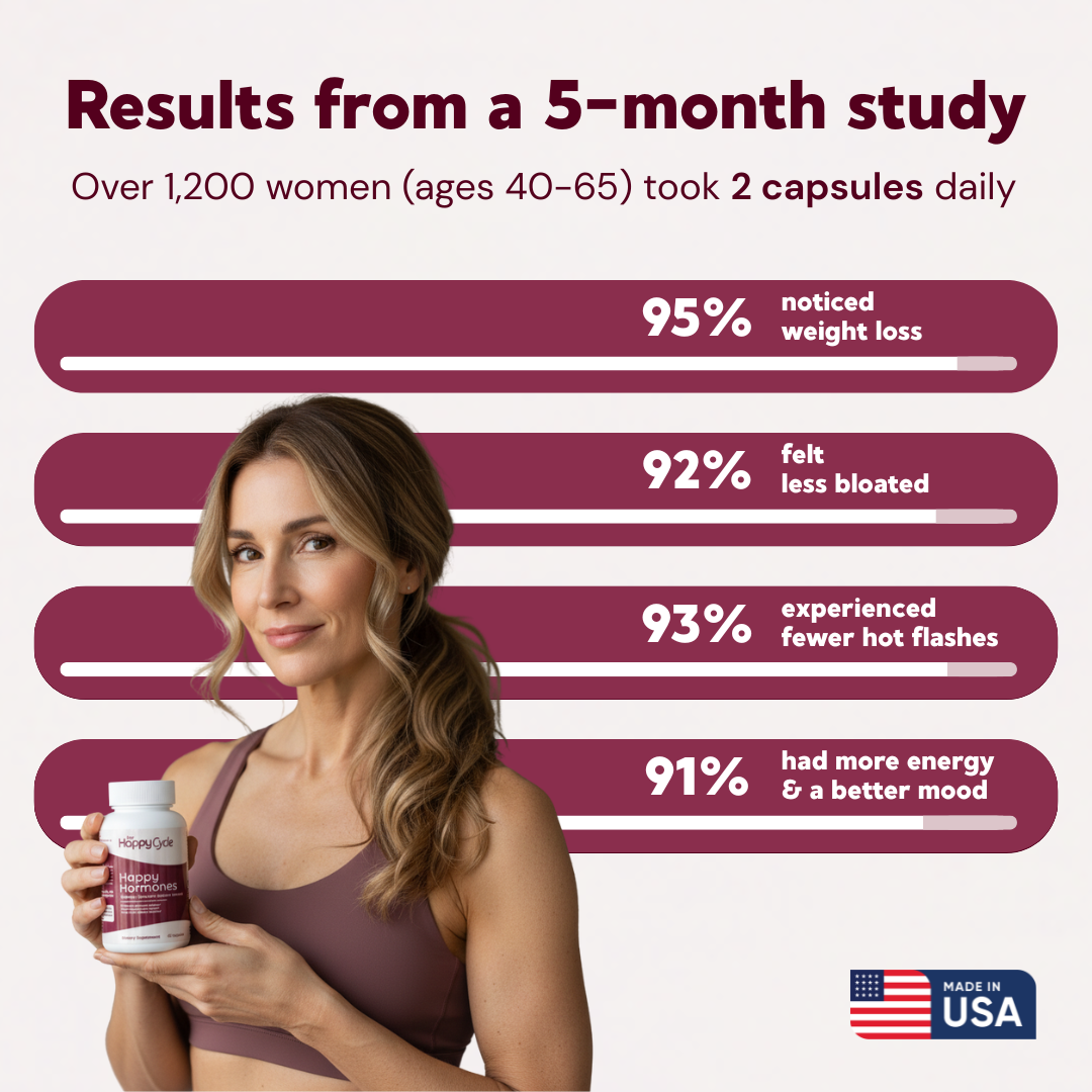 Happy Hormones is designed to support hormonal balance, which plays a key role in metabolism, cravings, and stubborn weight gain during menopause. Many women find weight becomes easier to manage as their hormones stabilize.