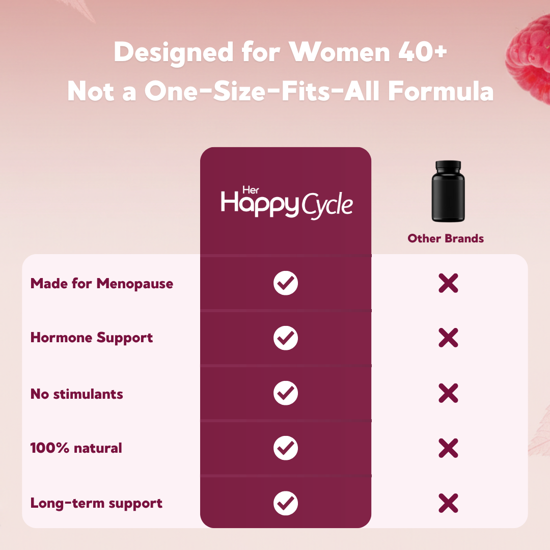 Happy Hormones is a gentle, premium formula created specifically for women 40+.